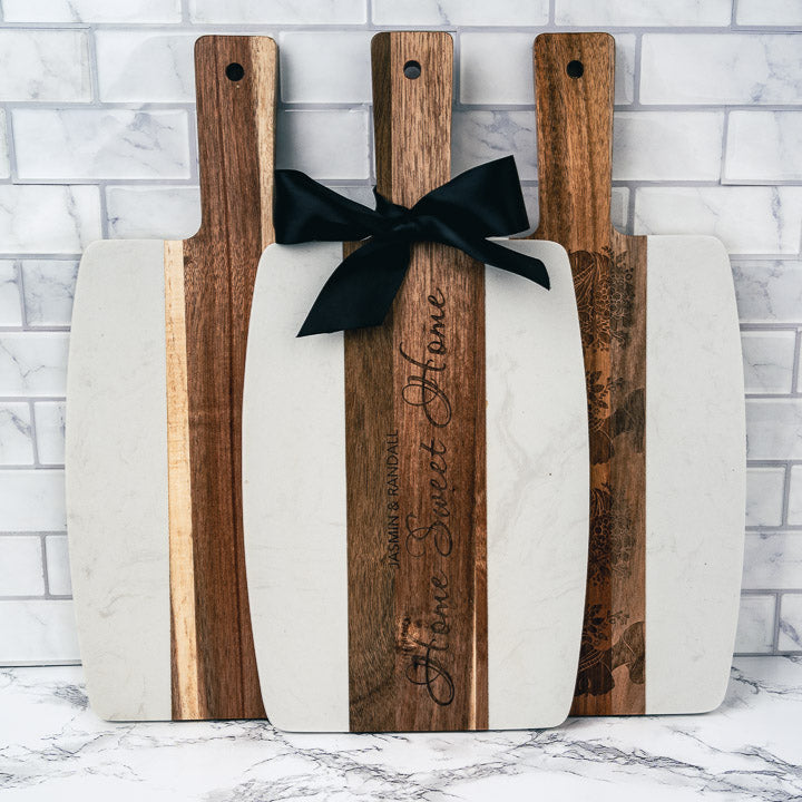 We use high-quality, sustainably sourced materials like Olivewood, Acacia, Marble, and premium stainless steel. Every piece is carefully selected for its beauty and durability, ensuring your gift is not only stunning but made to last.